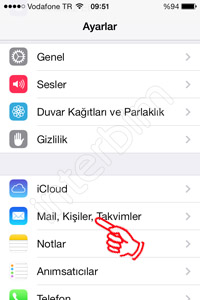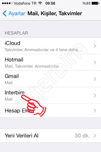 11) "Mail, Kişiler, Takvimler" menüsünün altında az önce oluşturduğumuz Adla yeni bir menü geldi. Bu menüye dokunuyoruz.