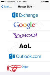4) "Hesap Ekle" menüsünün en altındaki "Diğer" menüsüne dokunuyoruz.