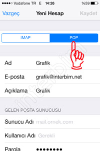 7) Karşımıza gelen sayfada "POP" sekmesine dokunuyoruz.