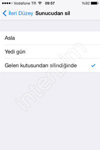 14) Daha sonra yine aynı bölümde bulunan "Sunucudan Sil" menüsüne dokunuyoruz. "Sunucudan Sil" menüsü altında bulunan "Gelen Kutusundan Silindiğinde" kısmına dokunuyoruz. Bunu yapmamızdaki amaç hosting kotamızın kısa bir süre içinde dolmasını engellemektir.