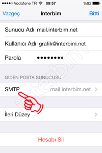15) Ad menüsüne tekrar geldiğinizde "Giden Posta Sunucusu" bölümünün altında bulunan "SMTP" kısmına dokunuyoruz.