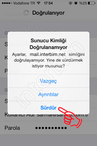 10) Eğer karşınıza bu ekran çıkarsa "Sürdür" butonuna dokunarak bir sonraki işlemden devam edebilirsiniz.